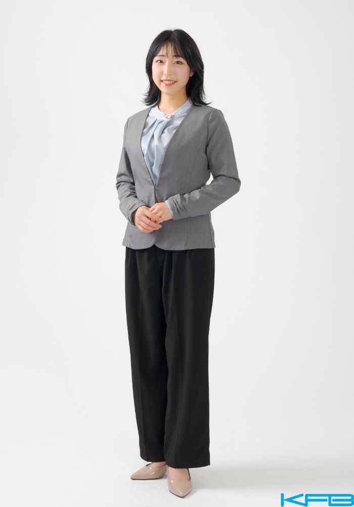 気っ風の良さが魅力の鍛冶谷アナ。美容も仕事も手を抜かず、磨けば光るどころか、もうすでに眩しいくらいの腕前。2年目にしてこの安定感と華やかさ。KFBの頼れる若き看板娘です。