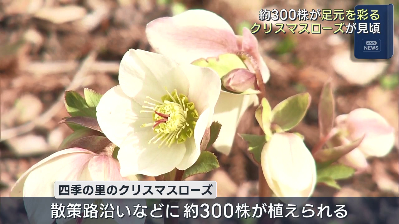 福島市の四季の里では、クリスマスローズが見頃を迎えています。春の優しい風を受けてゆらゆらと揺れる花。福島市の四季の里には約300株のクリスマスローズが植えられていて、色や花びらの特徴の違いなどを楽しむことができます。うつむき加減で咲くクリスマスローズ...